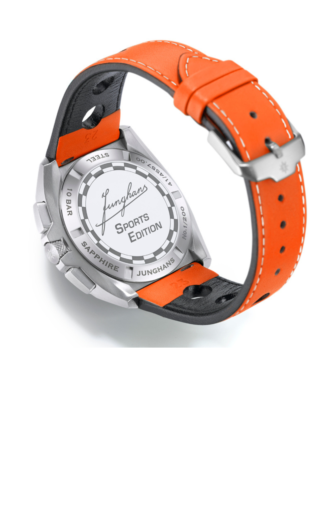 A edição limitada 1972 Chronoscope Sports Edition 2026 apresenta uma faixa dupla marcante, a histórica inscrição Junghans e o número 6 na forma de número de partida. A produção é limitada a 200 peças.