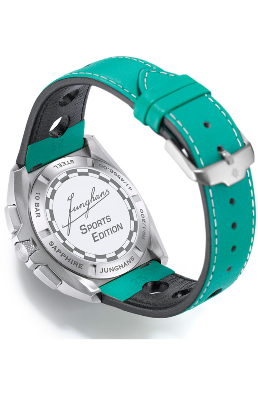 A edição limitada 1972 Chronoscope Sports Edition 2026 apresenta uma faixa dupla marcante, a histórica inscrição Junghans e o número 6 na forma de número de partida. A produção é limitada a 200 peças.