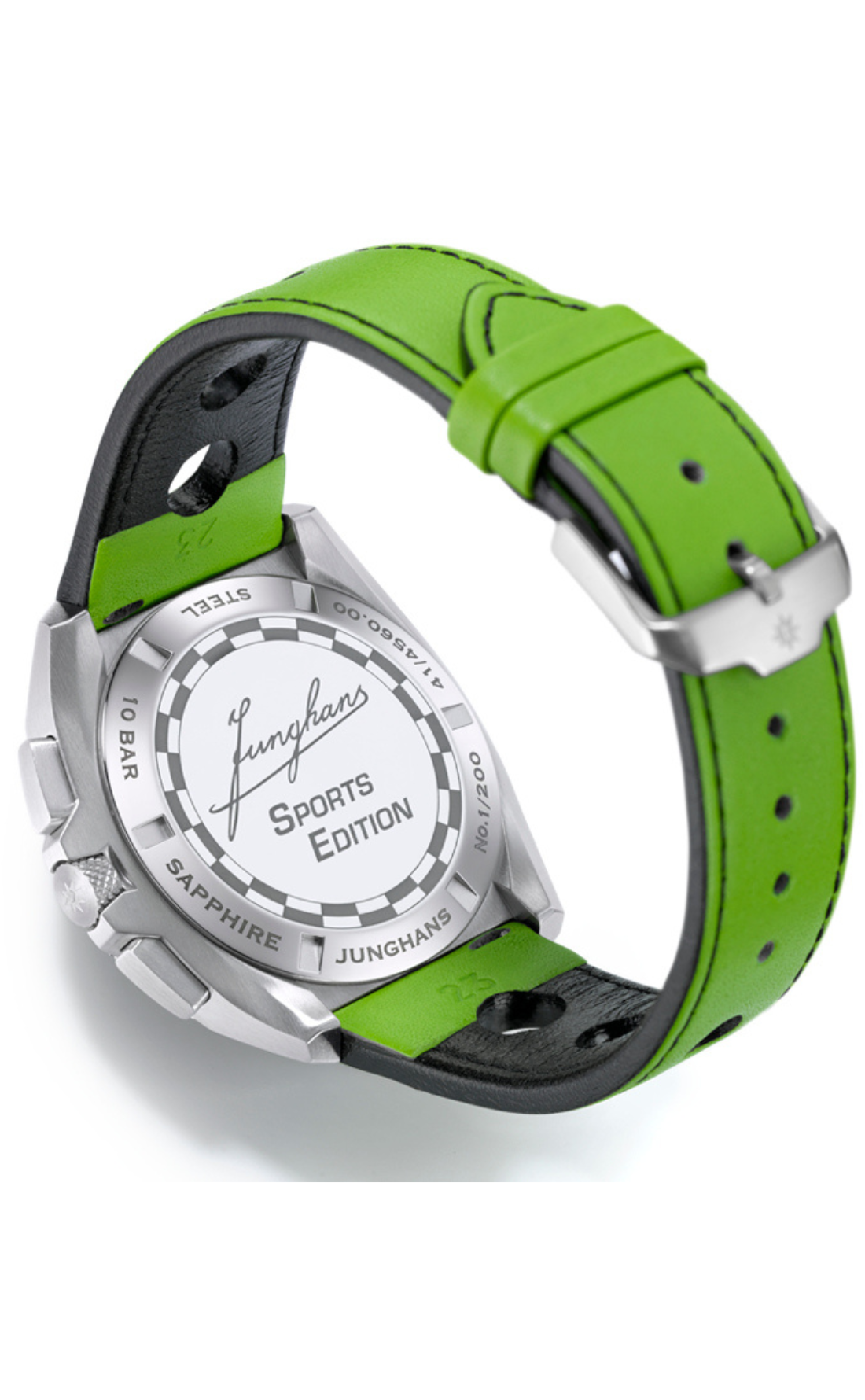 A edição limitada 1972 Chronoscope Sports Edition 2026 apresenta uma faixa dupla marcante, a histórica inscrição Junghans e o número 6 na forma de número de partida. A produção é limitada a 200 peças.