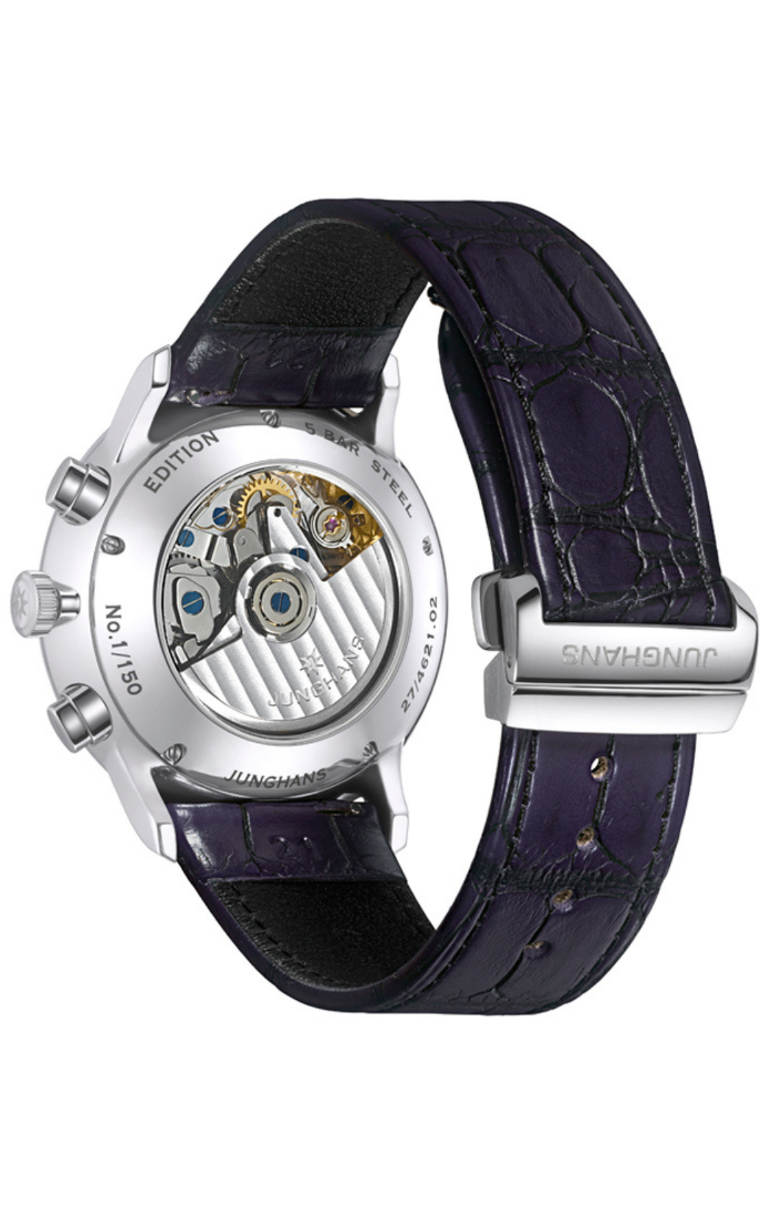 Limitada a 150 exemplares, a extravagante edição 2026 apresenta-se em violeta profundo com bracelete em pele de crocodilo e fecho de báscula. Os submostradores — uma característica dos relógios Meister, encaixados em submostradores recuados em forma de taça — são em preto mate.