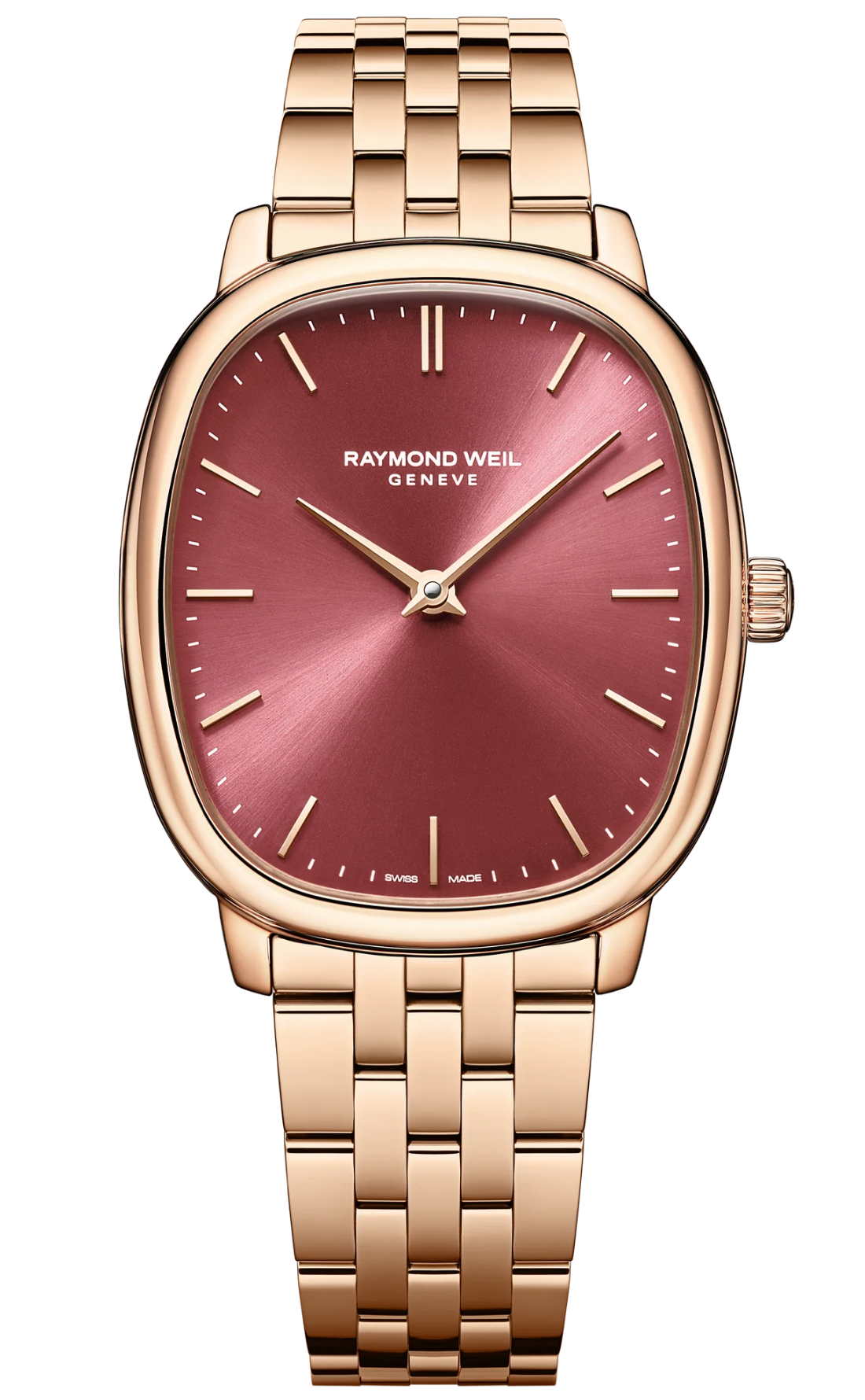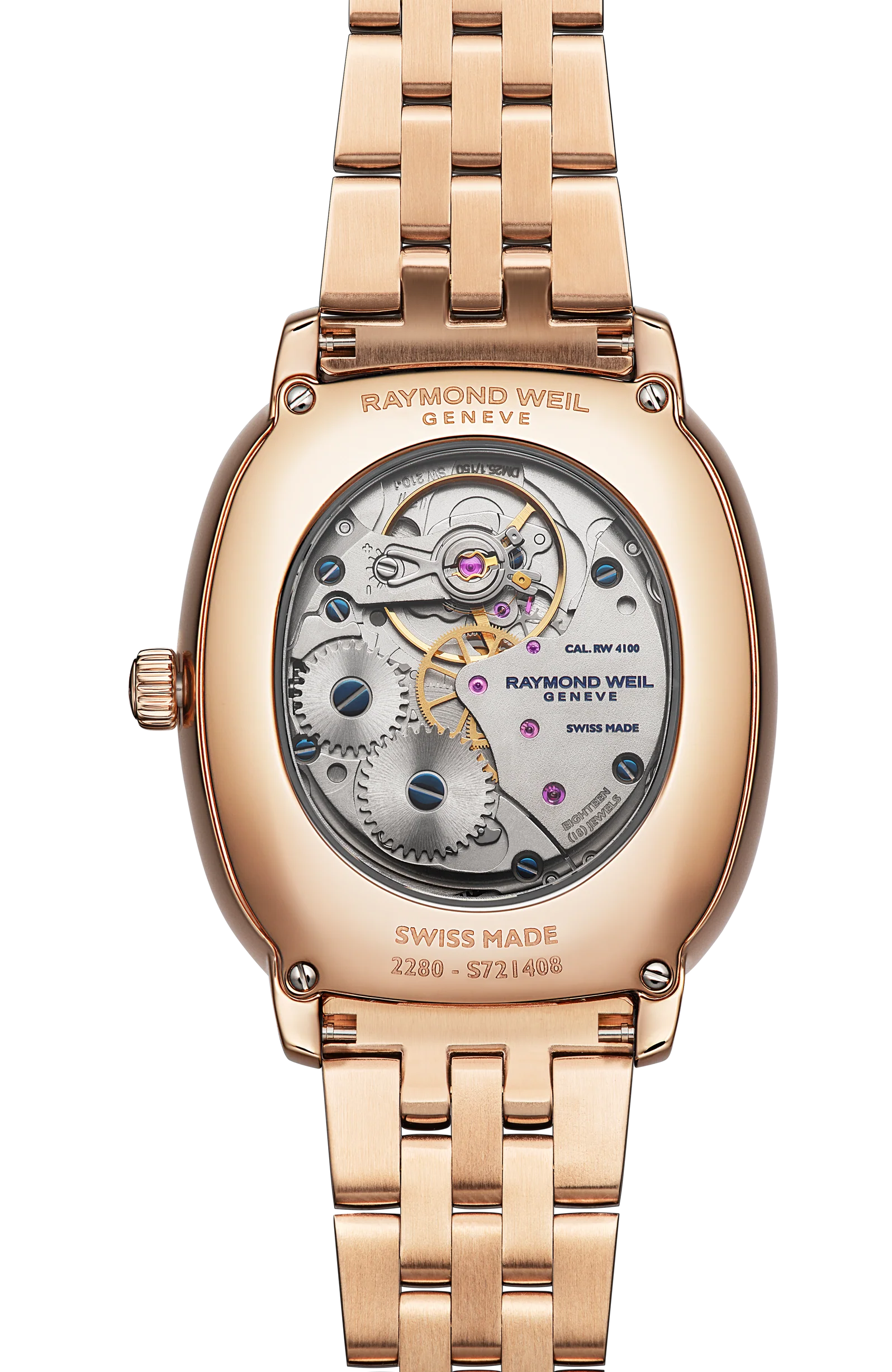 Unindo o passado e o presente, a herança o toccata heritage representa quase cinco décadas de savoir-faire da RAYMOND WEIL na relojoaria. A caixa oval fina, trabalhada em aço inoxidável polido com revestimento PVD em ouro rosa, aloja o movimento mecânico RW4100 com corda manual. Uma elegante homenagem ao artesanato tradicional suíço, oferecendo uma reserva de marcha de 45 horas.